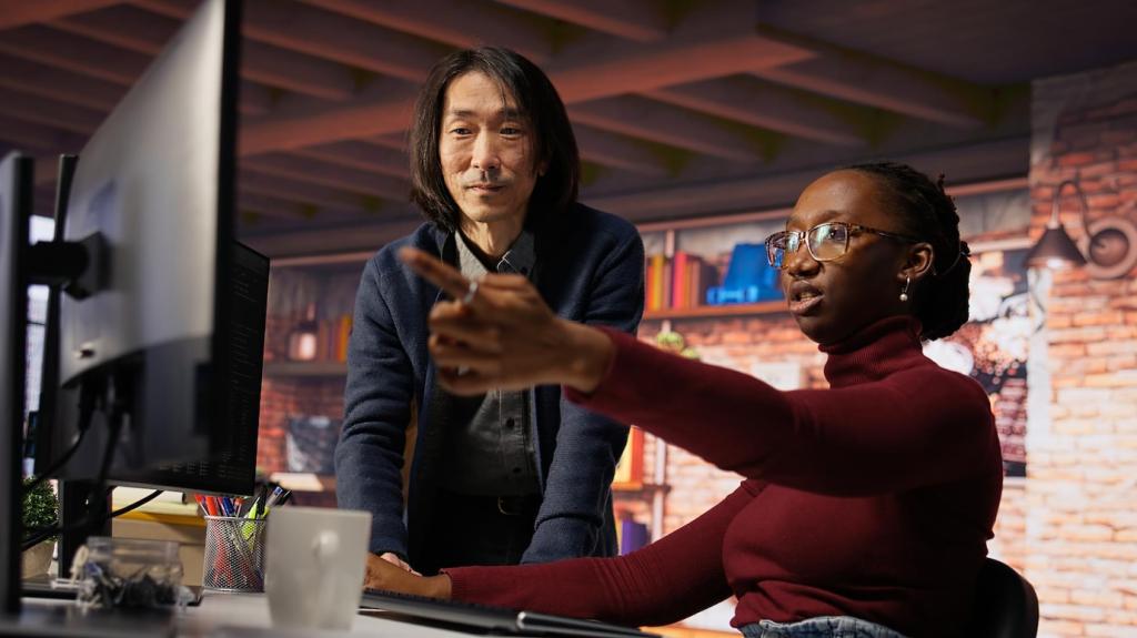 Untertitel, Transkripte, Lesemodi und skalierbare Schriftgrößen senken Hürden. Bieten Sie Audio, Text und Visualisierungen parallel an. Kleine Designentscheidungen entscheiden oft darüber, ob Lernende sich sicher und kompetent fühlen.